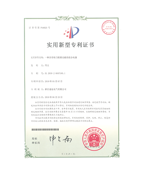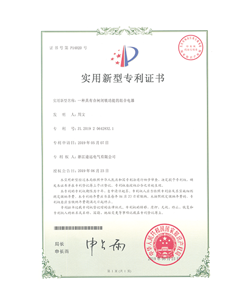 一种具有柜门联锁功能的组合电器实用新型专利证书
